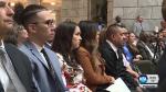 Luis Gustavo Lopez, still recovering from being attacked along with his father by a man swinging a metal bar who allegedly said he wanted to kill Mexicans, attended Monday's ceremony.