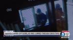 Surveillance video from inside shows Rice sprint into view right up to the drive-thru window and the burglar. "We made full-on eye contact.”