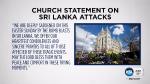 The Asia Area Presidency of The Church of Jesus Christ of Latter-day Saints said in a statement they were deeply saddened by the blasts.