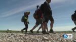 The group, many of Chinese descent, walked all 10 miles along the original railway route to the Golden Spike National Historic Site on Sunday afternoon.