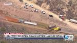 The road remained closed earlier Saturday primarily because officials didn't want vehicles traveling through the canyon while workers were on the road cleaning up the spill, Hopper said.