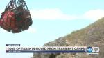 He added that they've "gotten out of control" and are "creating a health problem.” Cleaning up homeless camps on the hillside is nothing new, but bringing in a helicopter to haul away the thousands of pounds of stuff has never been done before.