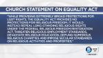 Church leaders say the Equality Act does not do enough to protect the rights of "individuals and faith communities to freely gather, speak out publicly, serve faithfully and live openly according to their religious beliefs without discrimination or retaliation, even when those beliefs may be unpopular," according to Monday's statement.