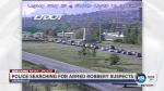 After the crash, the people in the Charger ran away, he said. Police were searching for two or three people in connection with the robbery in the area between I-15 and Legacy Parkway, around the train tracks located there, he added.