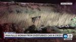 SALT LAKE CITY — A Tooele County man pulled a woman from a wrecked car along I-80 late Thursday night.