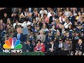 But postwar tensions were evident. Not invited to the remembrance was Russian President Vladimir Putin, who had been present for the 70th commemoration of D-Day.