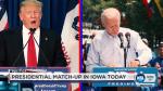 At almost the same moment in Mount Pleasant, Biden noted the attention he has been getting from Trump. Biden's appearances from earlier in the day were playing on TV screens when Air Force One landed in Iowa.
