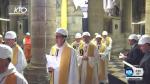 Exactly two months after the blaze engulfed the landmark Gothic building in the French capital, the service was celebrated by Paris Archbishop Michel Aupetit in a chapel behind the choir, a place confirmed by construction experts as safe.