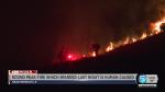 The flames are burning above and about a half a mile away from some nearby homes.