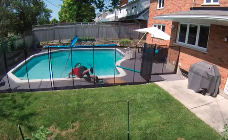 This video shows the duck staying perfectly still, sprawled out, ironically “playing possum” and waiting for the chance to escape.