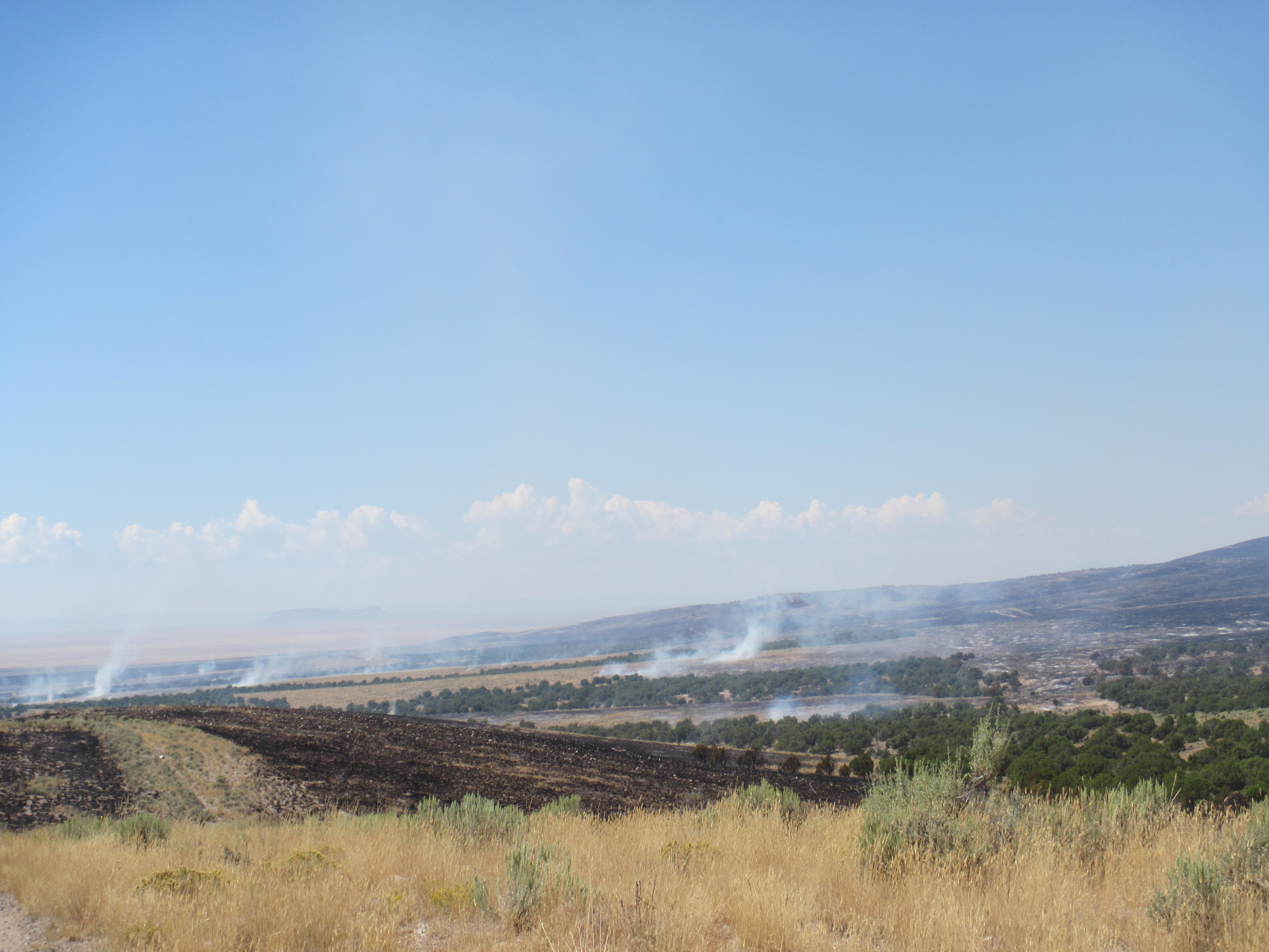 "The great problem is that it's already gone through the sagebrush and the cheatgrass and completely denuded the slopes," said Draper, who said he is worried about possible flash floods. "When we get a decent storm there won't be anything to hold it."