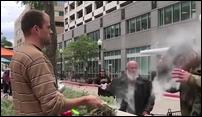 When Bird continued to smoke, Jamison came out of the restaurant with a fire extinguisher and said, “I told you, you can’t be here,” Bird claims. Bird’s girlfriend asked Jamison if he was going to spray the smoker with the fire extinguisher, to which Bird said Jamison replied, “yeah,” then sprayed the extinguisher in his face.