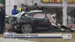 SALT LAKE CITY — Three people are in serious condition after being injured Sunday in a fiery morning crash at 900 West and North Temple.