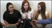 Ashley Fine and Kennedy Stoner, friends of slain University of Utah student Mackenzie Lueck, sported pink baseball caps in memory of their friend and carried a banner with her photo on it. They said they were there to draw attention to victims of violence.