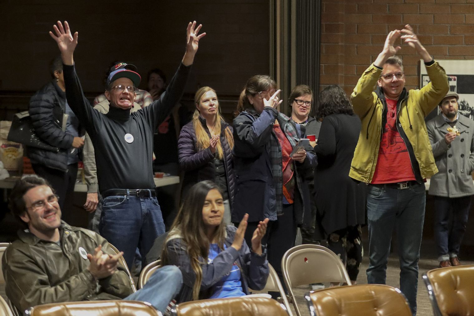At Gracie's, a gastropub in downtown Salt Lake City, members of the Young Democrats of Utah organization gathered to celebrate and watch the results roll in from across the country.