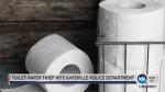 The apparent toilet paper bandit hasn’t struck the station’s women’s bathrooms, Danielson said.