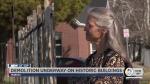 She stood in the background watching as a backhoe leveled the walls of the meetinghouse Tuesday afternoon.
