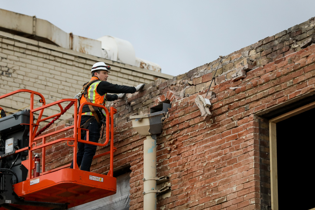 Older buildings, including the historic Panama Building, a building attached to the Empress Theatre and Colosimo’s sausage factory, are damaged, among other buildings, Schulz said, noting bricks and siding had fallen onto sidewalks.
