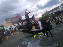 “We had to go in with our officers and rescue her out of that car,” Brown said, stating that other officers had to literally grab her and pull her from the crowd.