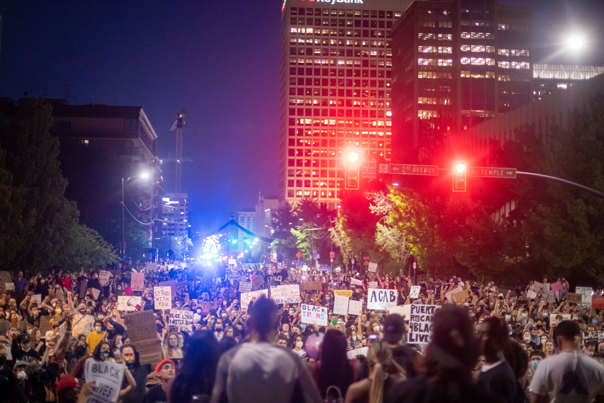 As they chanted “Black lives matter” and the names of those killed by police, the voices drowned out the hum of a Utah Department of Public Safety helicopter at times circling overheard. The group echoed calls to defund police and amp up spending on health care and education, condemning state and city leaders for failing to respond swiftly to their calls.