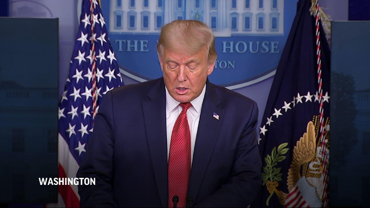 WASHINGTON (AP) — President Donald Trump was abruptly escorted by a U.S. Secret Service agent out of the White House briefing room as he was beginning a coronavirus briefing Monday afternoon. He returned minutes later, saying there was a “shooting” outside the White House that was “under control.”