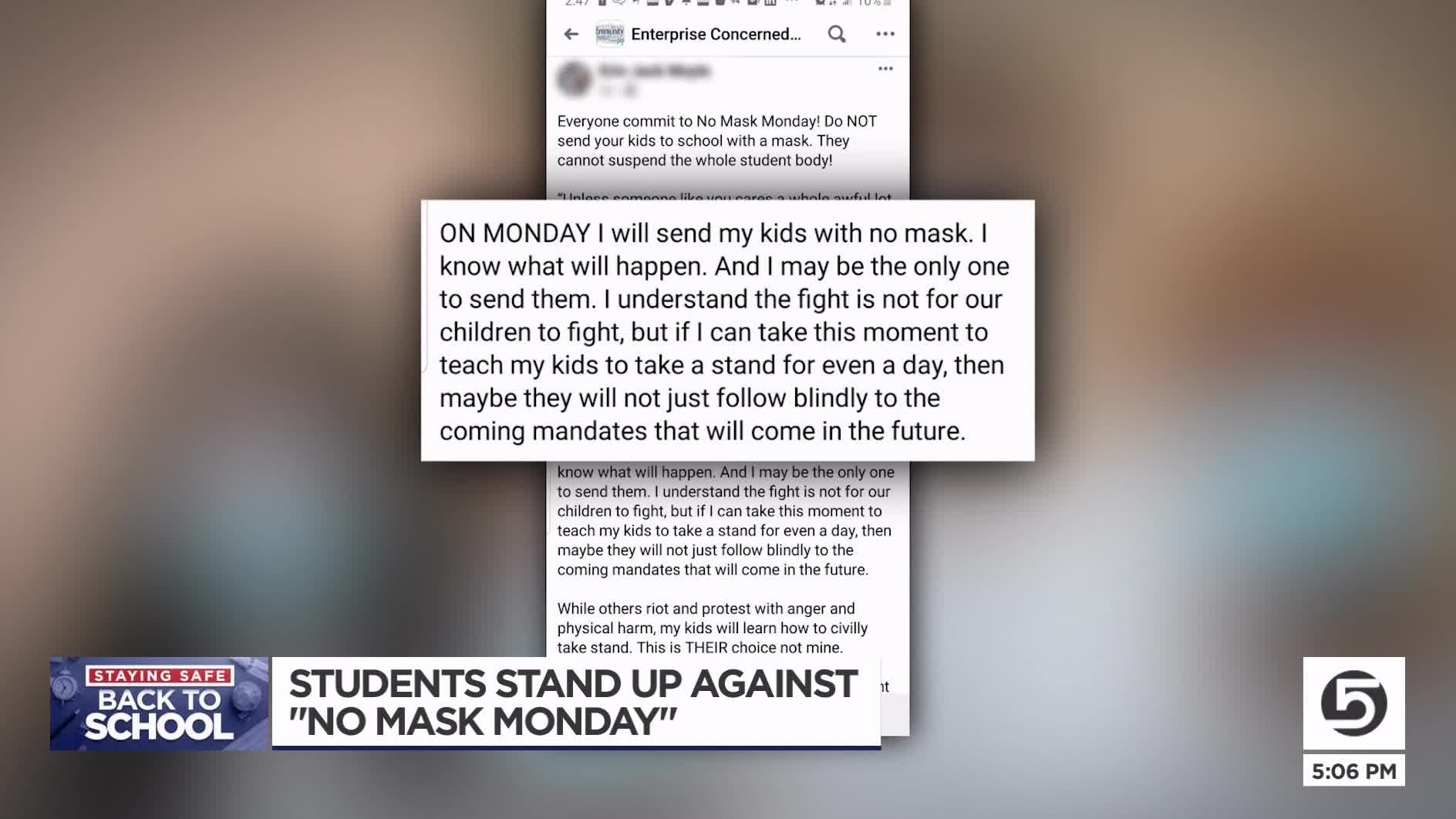 ENTERPRISE — In Washington County, some people were calling for “No Mask Monday” to protest mandatory masks in schools, but many students did not like the idea.