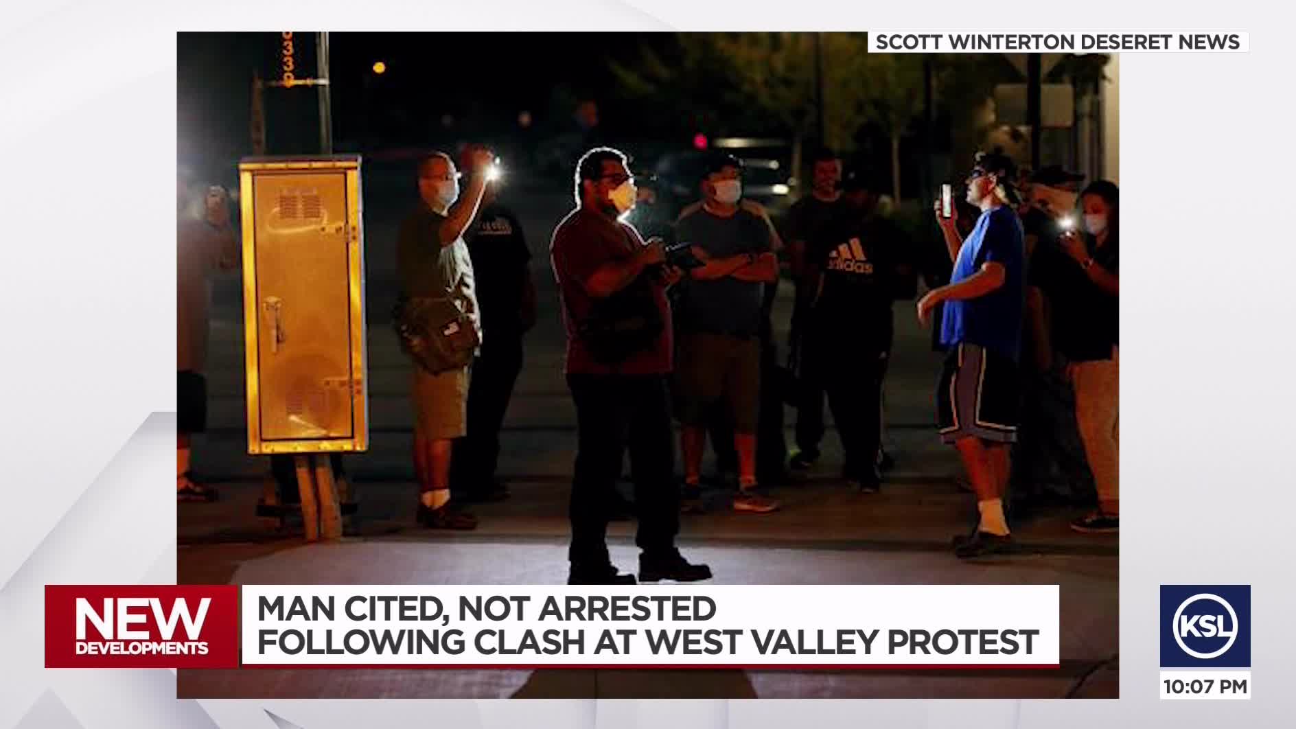WEST VALLEY CITY — A Provo man was arrested in a clash between protesters from Black Lives Matter and counterprotesters in front of the West Valley City Police Department Wednesday night.