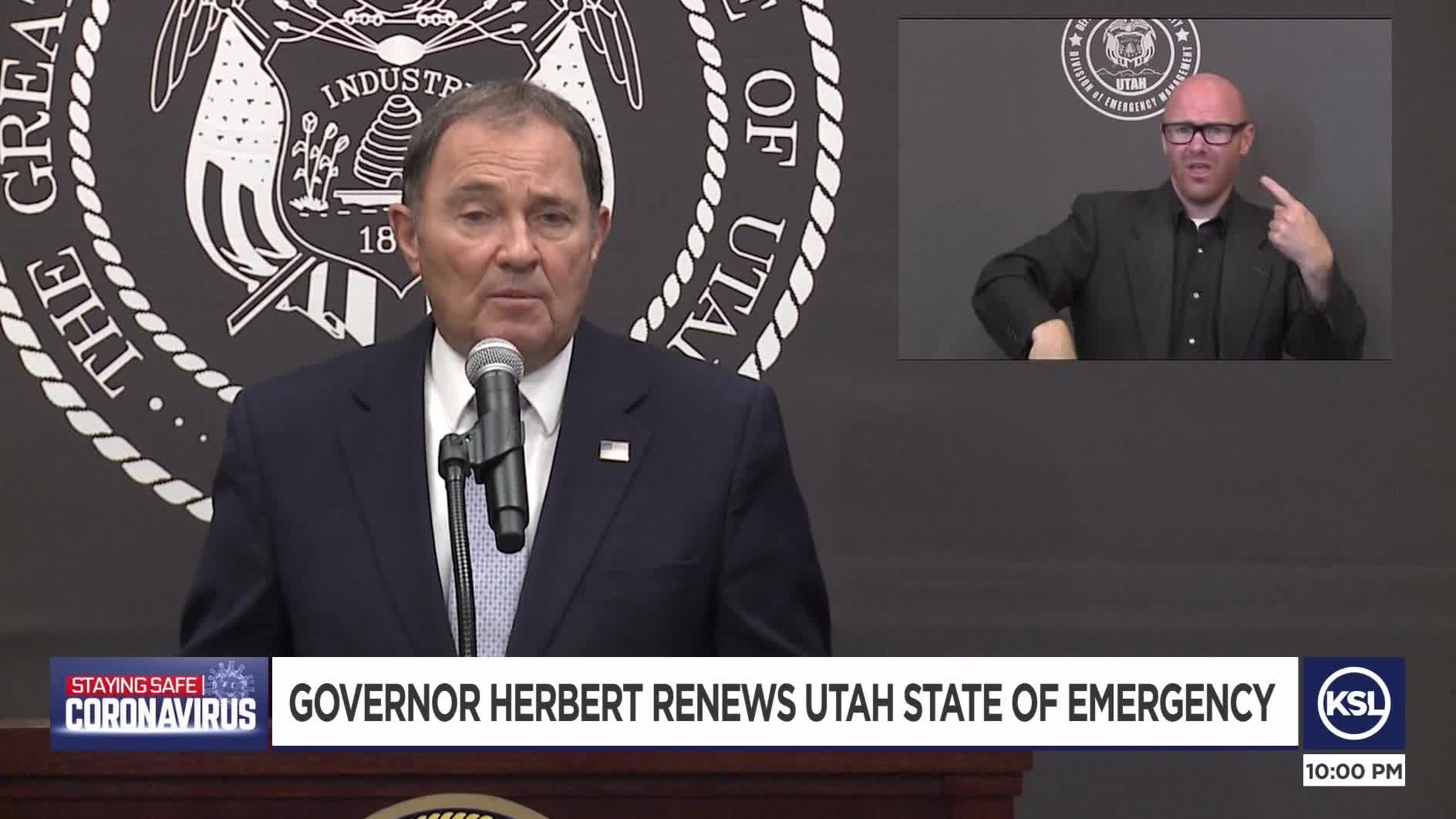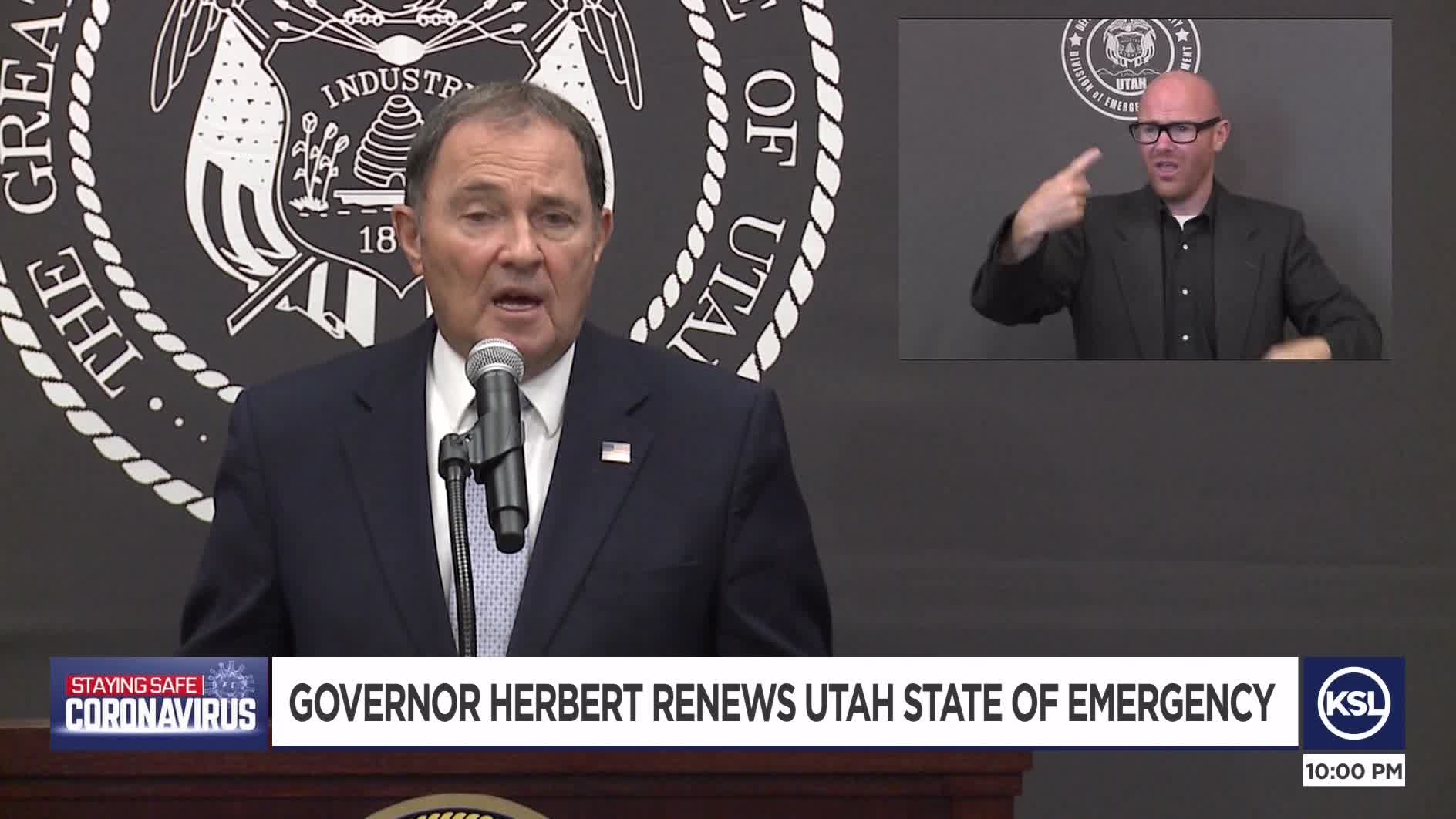 Because of the recent spike, Utah Gov. Gary Herbert on Saturday announced that he is renewing a state of emergency declaration that otherwise would have expired today. Herbert issued brief renewals of statute and rule suspensions that, among other things, relax the rules about using telehealth services and allow bars and restaurants to keep their Department of Alcoholic Beverage Control licenses even if they close down for a time.