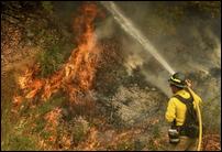 The death occurred Thursday in San Bernardino National Forest as crews battled the El Dorado Fire about 75 miles (120 kilometers) east of Los Angeles, the U.S. Forest Service said in a statement.