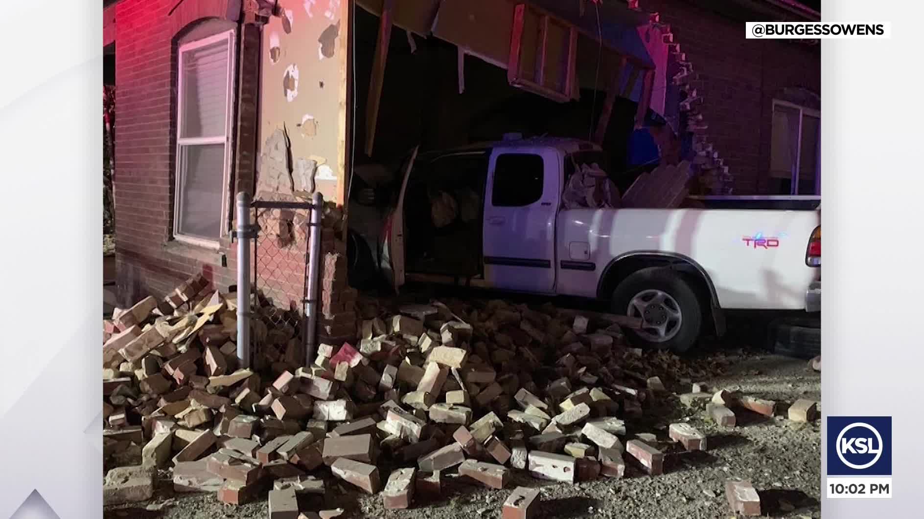 MIDVALE — No one was injured late Friday night when a truck plowed into the Midvale campaign headquarters of congressional candidate Burgess Owens, the candidate said on Twitter.