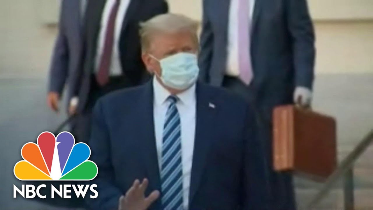 Trump wore a mask as he left the helicopter that flew him back from a military hospital outside Washington and climbed the stairs of the White House South Portico, where he removed it and posed for pictures, waving, saluting and giving thumbs-up signs. He then turned to walk into the White House, his mask still in his pocket, TV footage showed.