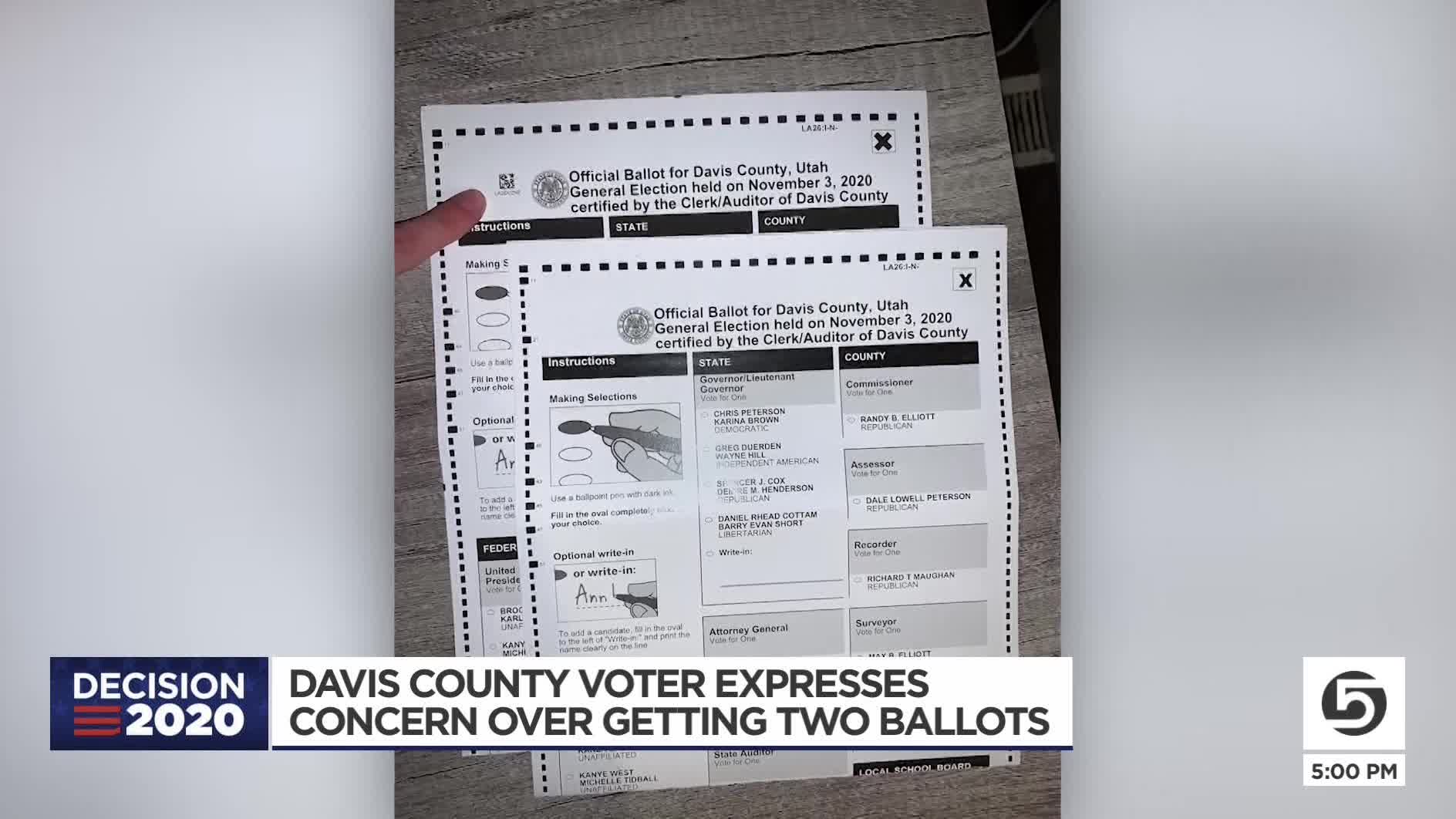 FARMINGTON — A Utah man called election officials after a pair of ballots arrived at his home, both in his name. It's not a common mistake, officials said, but they have checks in place to prevent more than one ballot being counted for each voter.