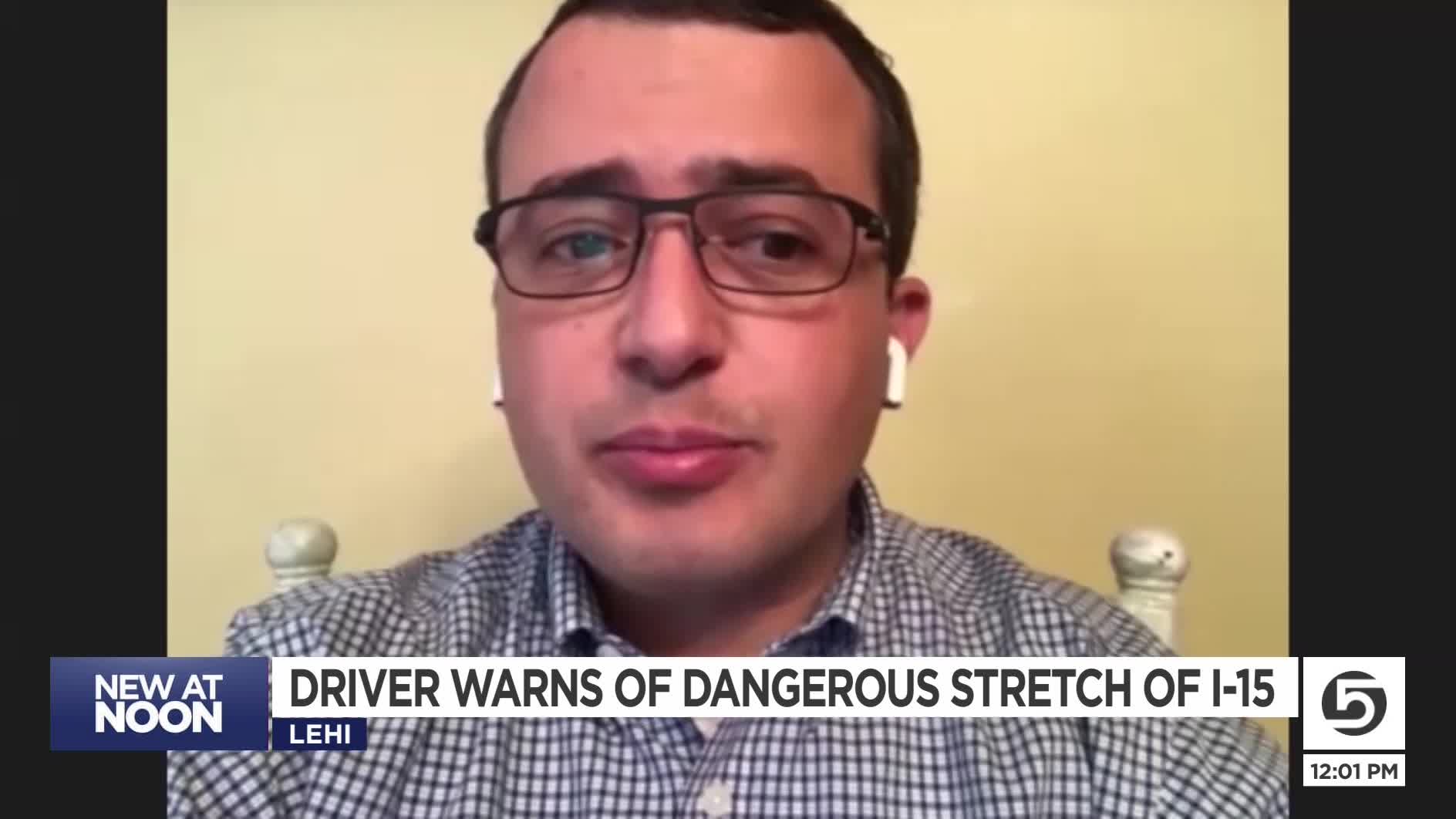 LEHI — A Utah County man who owns a trucking company said lanes on I-15 in Lehi are dangerous – and he has video of an incident to illustrate his point.