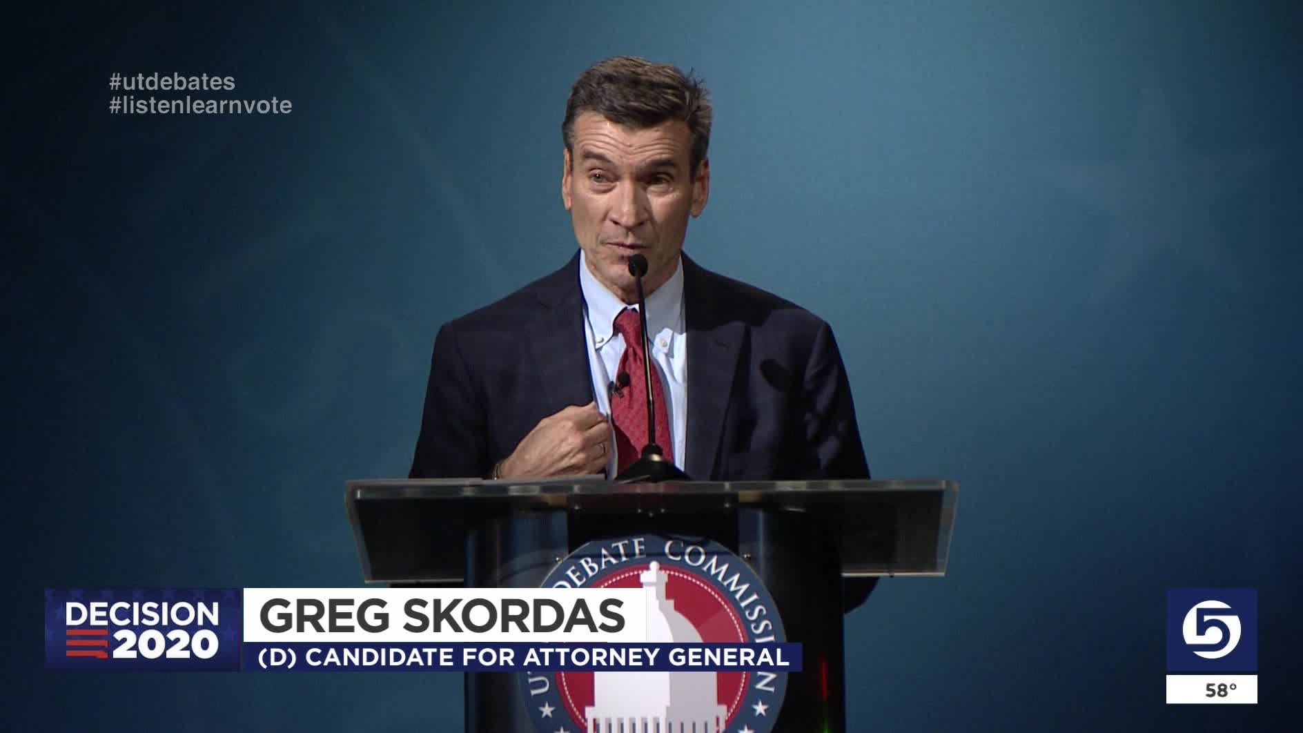 SALT LAKE CITY — Republican Attorney General Sean Reyes and Democratic challenger Greg Skordas opened their debate Wednesday on a negative note that crescendoed into an all-out argument at the end.