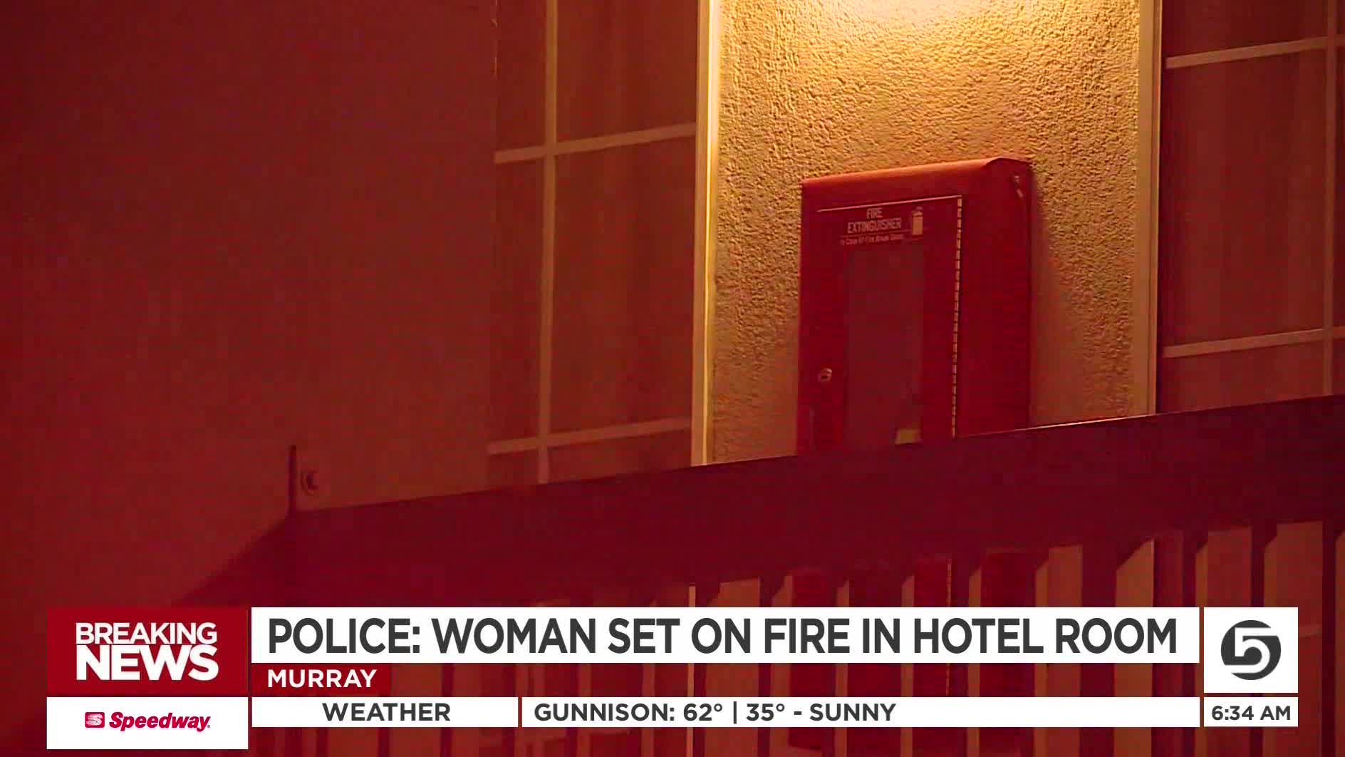 Just before 3 a.m. officers were called to the Studio 6 Hotel, 975 E. 6600 South, where a 34-year-old woman suffered burns over 70% of her body after a man "poured an unknown accelerant on her and lit her on fire," according to a prepared statement from Murray police.