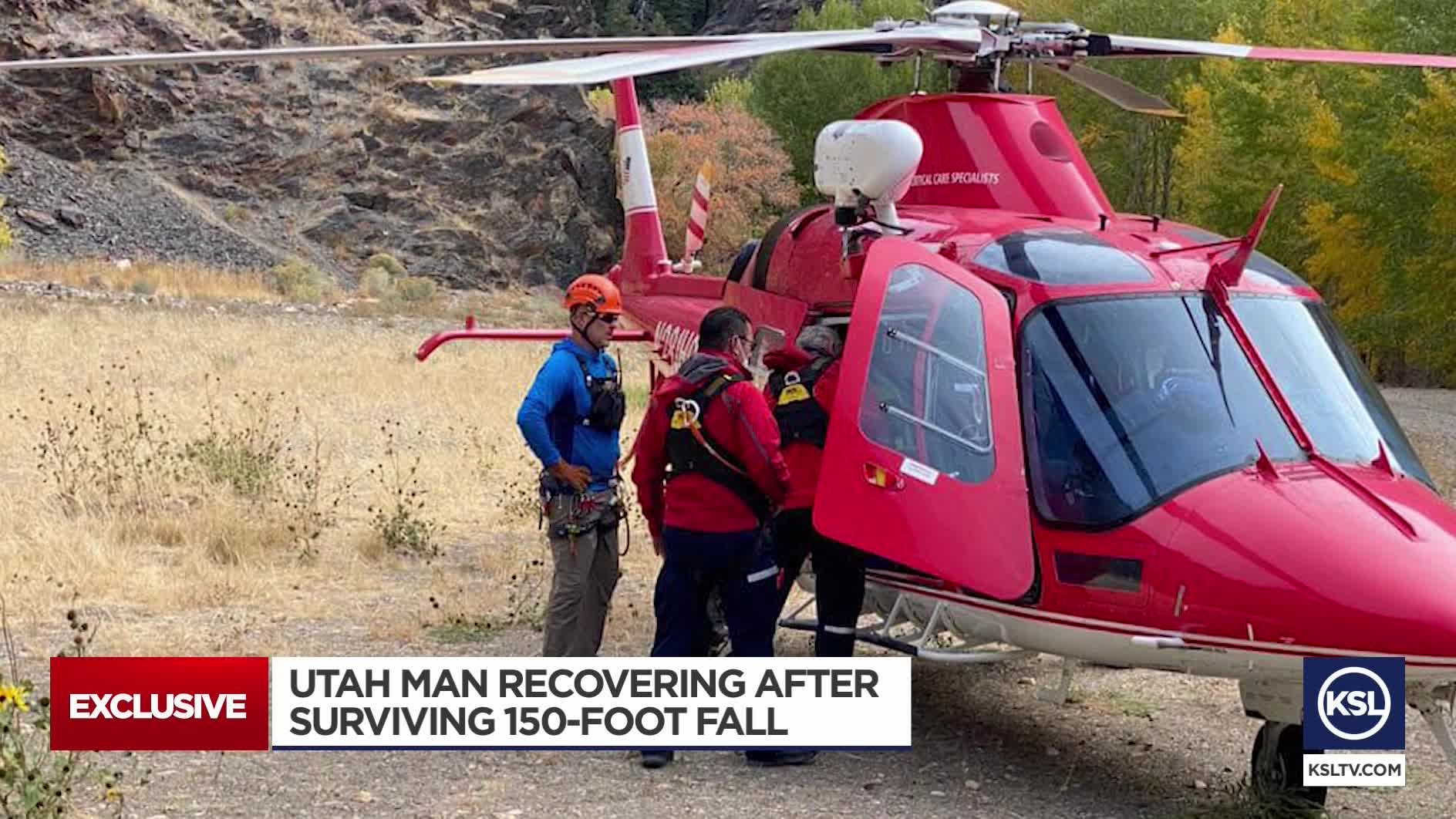 MURRAY – A Plain City man took his first steps in the hospital after he survived a 150-foot fall down a steep ridgeline above Lake Blanche in Big Cottonwood Canyon.