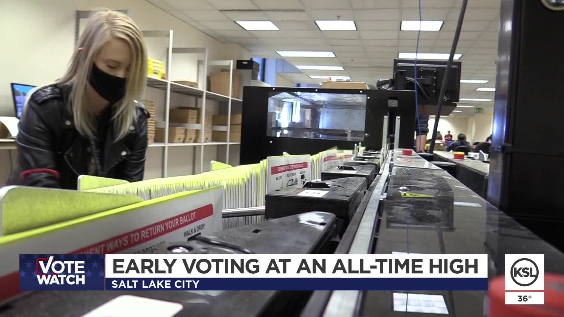 SALT LAKE CITY — Election officials at the Salt Lake County Clerk's Office said they're working incredibly long hours as early voter turnout climbs to an all-time high. Will that have any impact on the way many of us vote, lines on Election Day or how long we will have to wait to know who won?