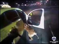 "My dog's crying in there," the officer is heard saying on body camera video. "We gotta move, I gotta get my dog."