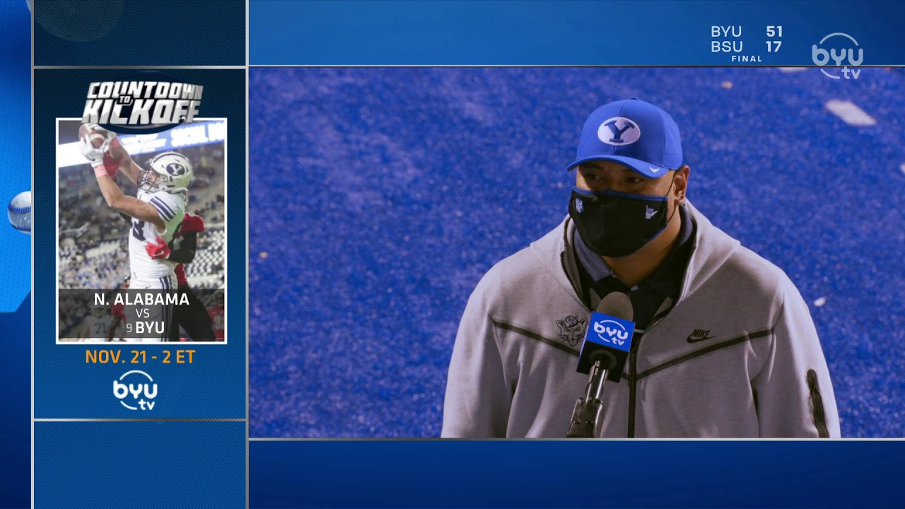 BOISE, Idaho — BYU head coach Kalani Sitake walked into the locker room at Albertsons Stadium at halftime of the Cougars' rivalry game with No. 21 Boise State, and didn't say a word.