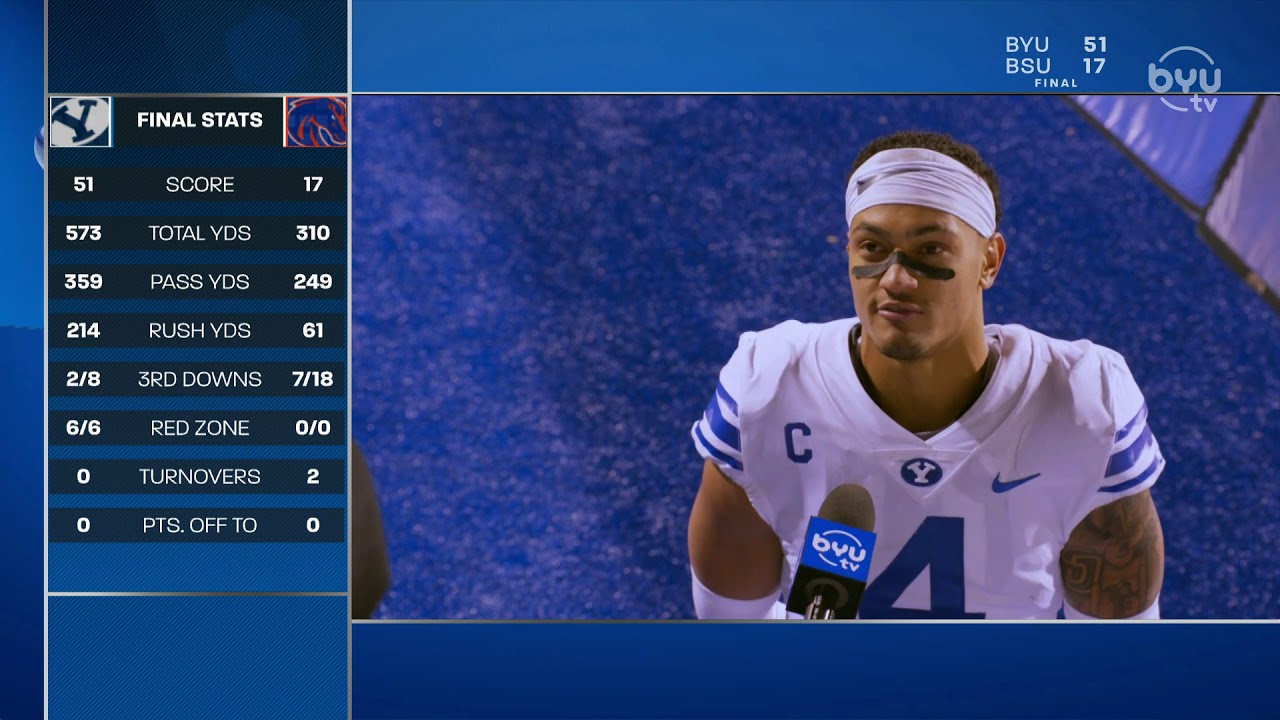 Because it wasn't just Wilson who sparkled on the blue turf in Boise. Tyler Allgeier ran for 123 yards and two touchdowns, including an 86-yard scoring run that was the longest at BYU since 2006.