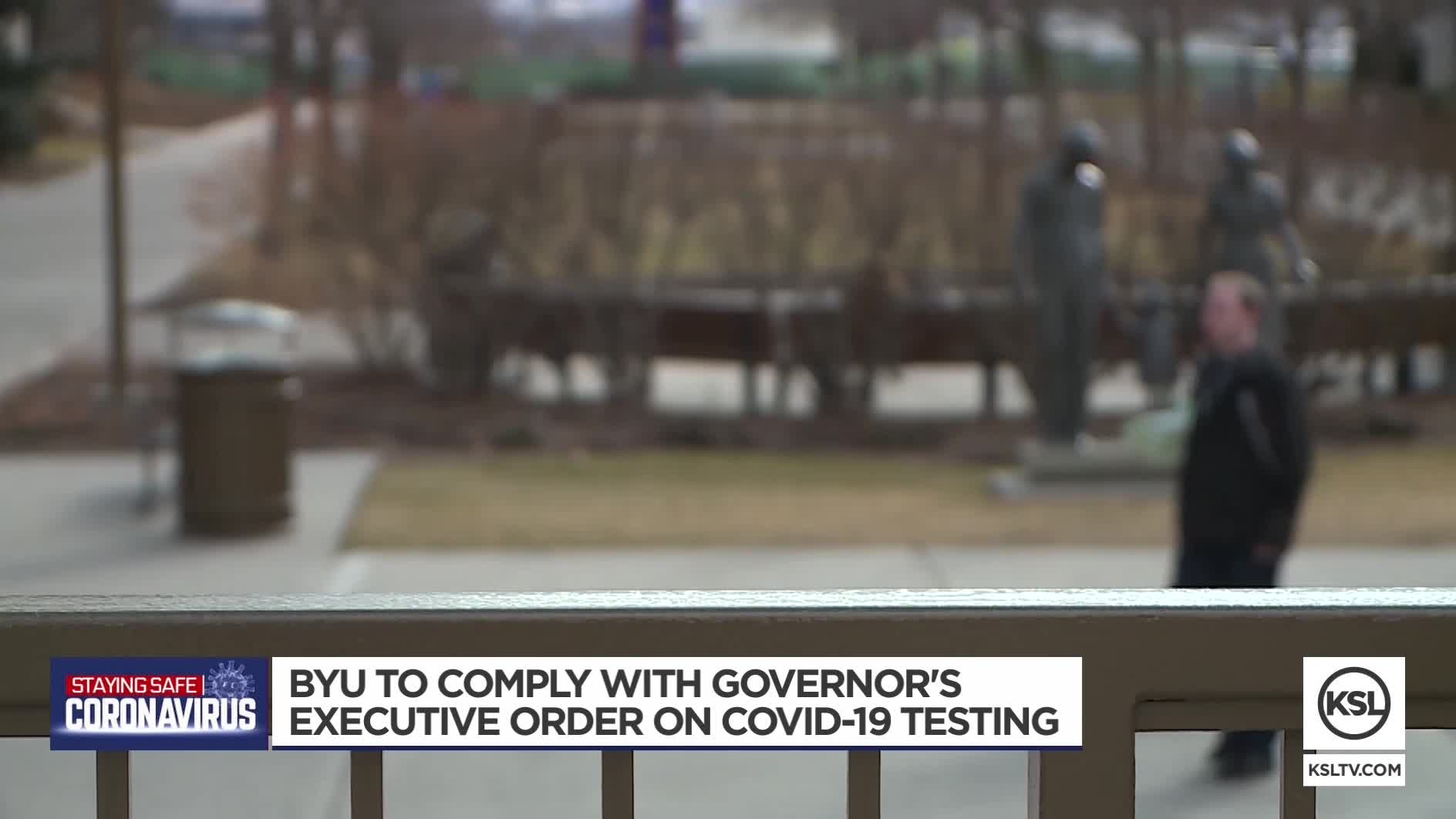 BYU officials told KSL.com Monday the school will comply with the executive order. Full weekly testing of students and employees will be in place by the deadline of Jan. 1, 2021 at the latest, but may be put in place before then. The university is still finalizing details on how the testing will be conducted, and those details are expected to be released "in the near future."