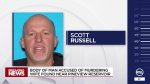 The car and the body of Scott William Russell, 53, were discovered off Highway 39 by a man walking his dog, officials said.