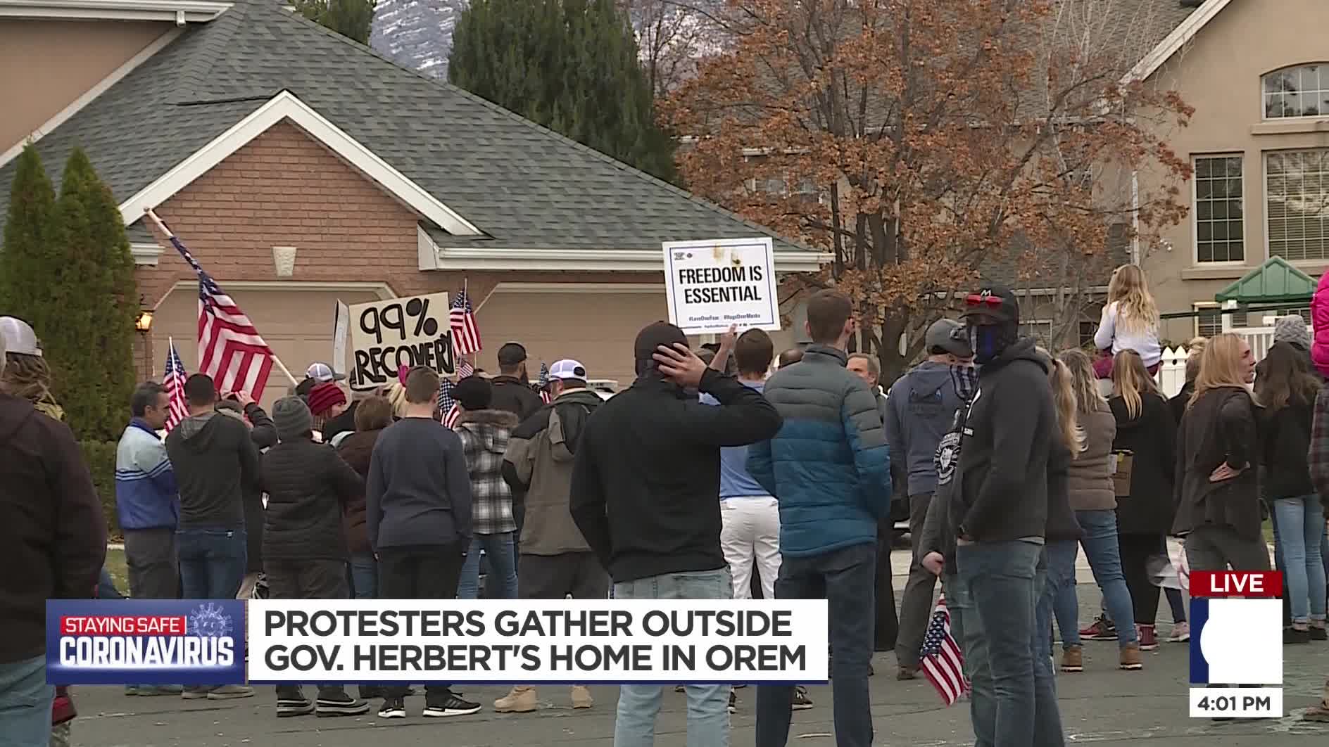 The protesters spoke out against Herbert's statewide mask mandate and a limit on social gatherings to their own household to combat the state's COVID-19 surge. The protests comes on the heels of Utah's highest week of positive COVID-19 cases.