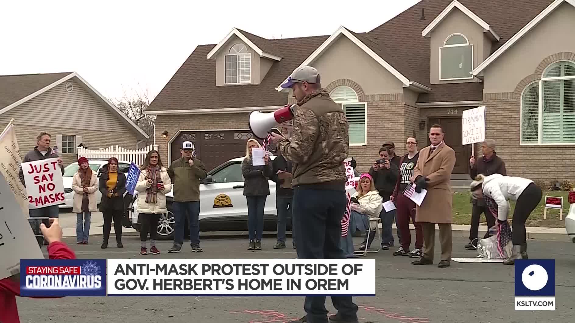 SALT LAKE CITY — Several protesters gathered outside the residential homes of Gov. Gary Herbert and Lt. Gov. Spencer Cox to speak out against the state's mask mandates.
