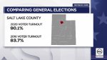 In Salt Lake County, Utah's most populous county, Clerk Sherrie Swensen lauded "unimaginable" turnout of over 90% after about 100,000 new residents registered to vote since 2016. In total, Salt Lake County had over 610,000 active registered voters in this year's presidential election. Of those, nearly 550,000 cast ballots, Swensen said, including over 51,000 in person and over 498,000 by mail.