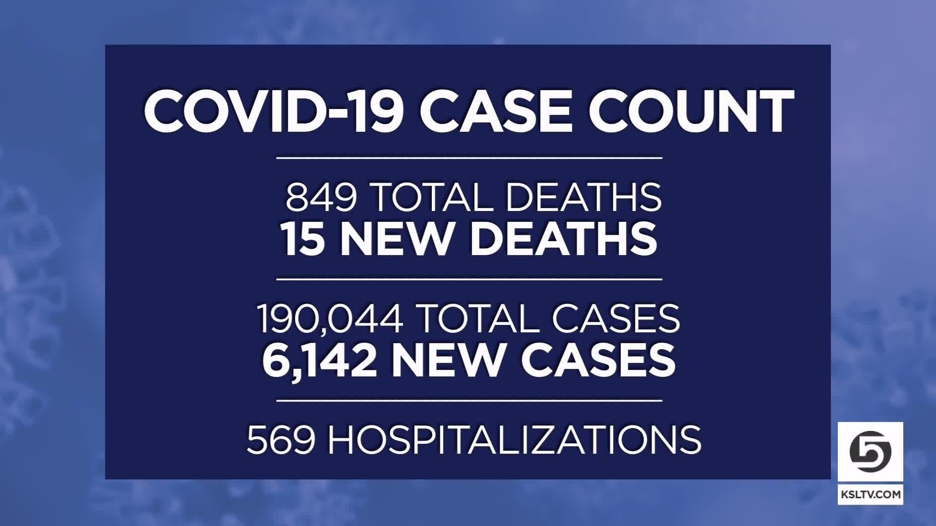 SALT LAKE CITY — Utah's number of COVID-19 cases has increased by 6,142 with 15 more deaths reported for Thursday and Friday, according to the Utah Department of Health.