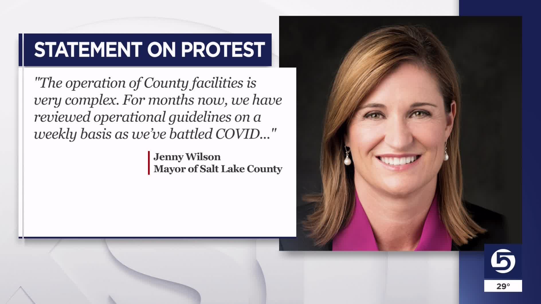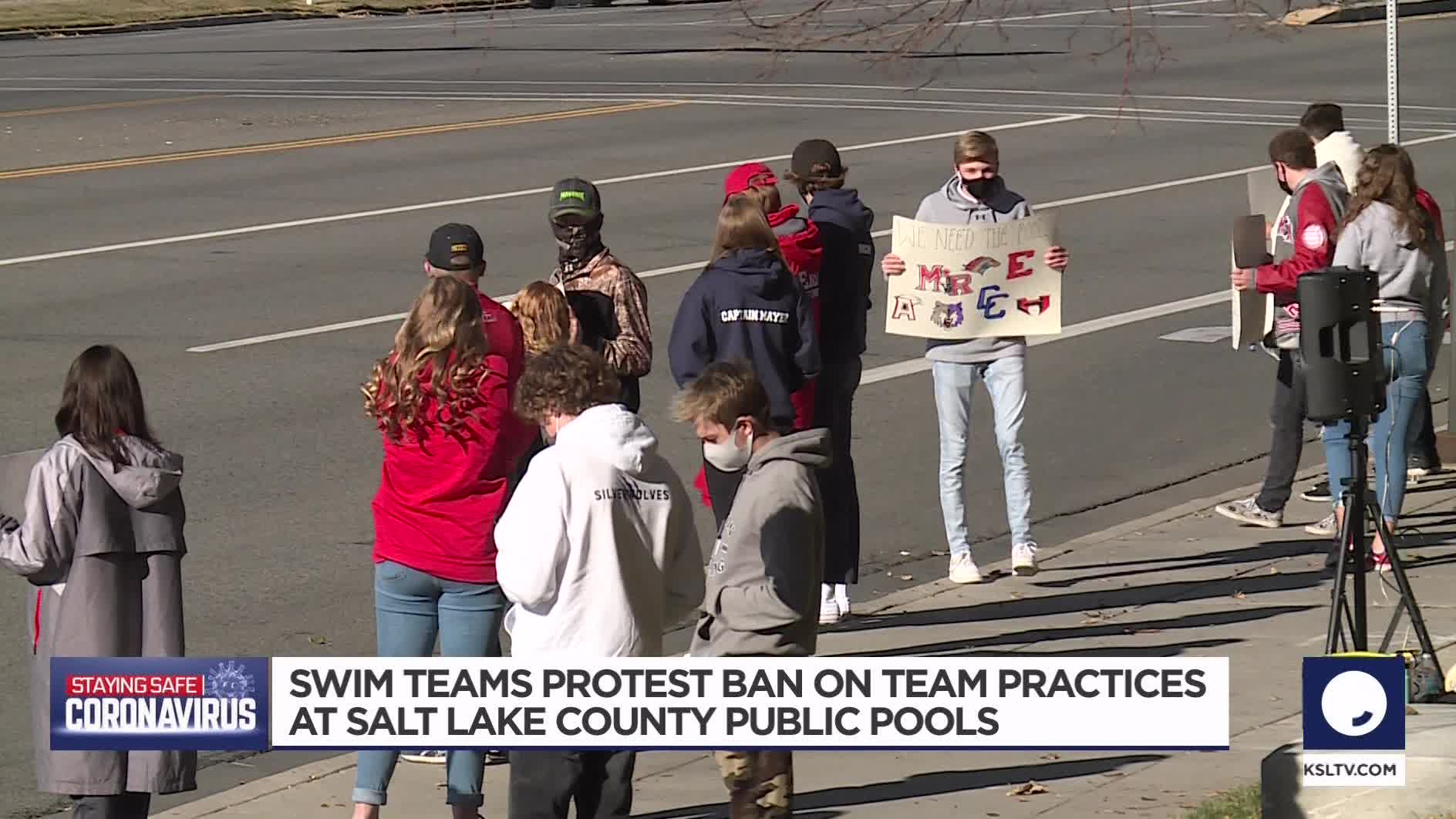 SALT LAKE CITY — More than 30 swimmers from high school teams across Salt Lake County participated in a swimmers protest Friday outside the county government building on 2100 South and State Street. They want Salt Lake County Mayor Jenny Wilson to lift the ban on team practices at county pools.