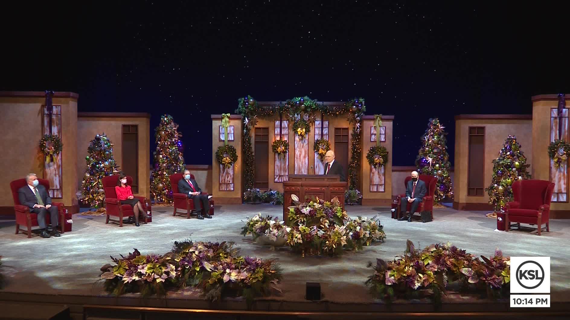 Due to the ongoing pandemic, guests at Sunday's devotional were limited to only those taking part in the proceedings. Pre-recorded music from The Tabernacle Choir on Temple Square was played in lieu of a live performance.
