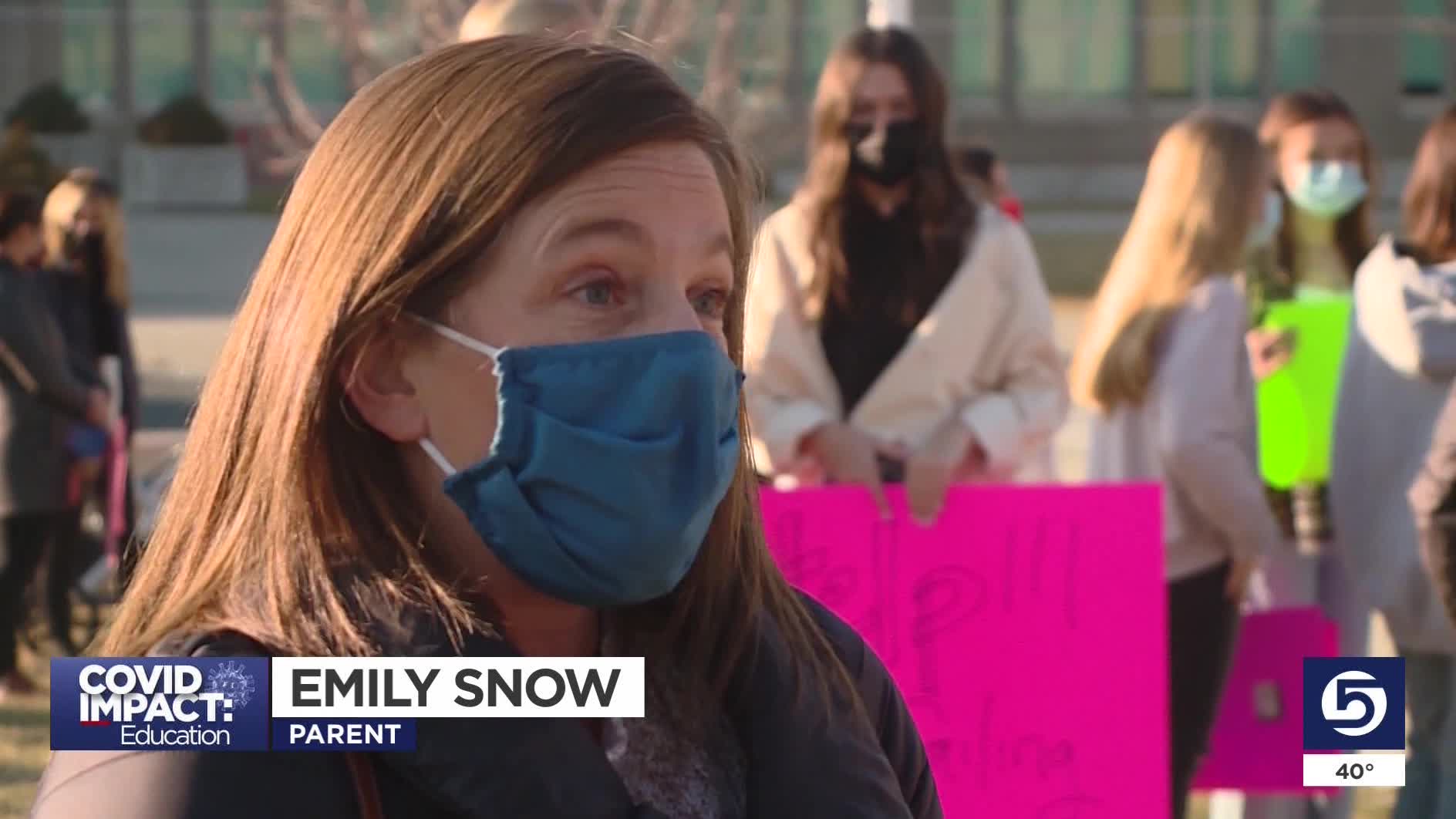 Students read letters to administrators urging a return to classrooms because they are failing in school, struggling emotionally and having a hard time paying attention after months of online schools. The students were joined by about 20 adults, mostly parents.