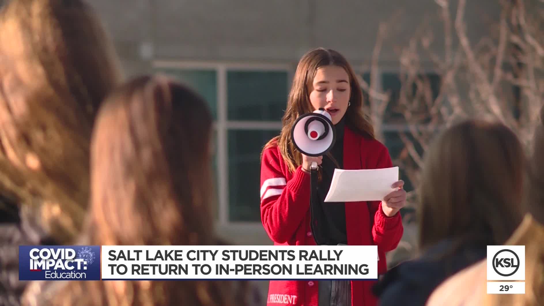 SALT LAKE CITY — More than 100 students who attend Salt Lake City schools rallied at East High School Monday, urging the school board and administrators to resume in-person learning.